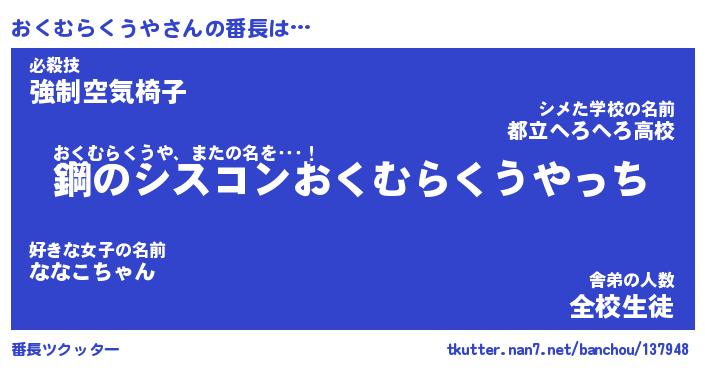 | 伝説のあだ名 | 『封印されしスナイパーおくむらくうや』 |