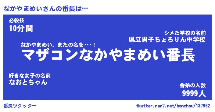 | ヘコむあだ名 | 『なかもー』『豆乳』『なかっちょ』 |