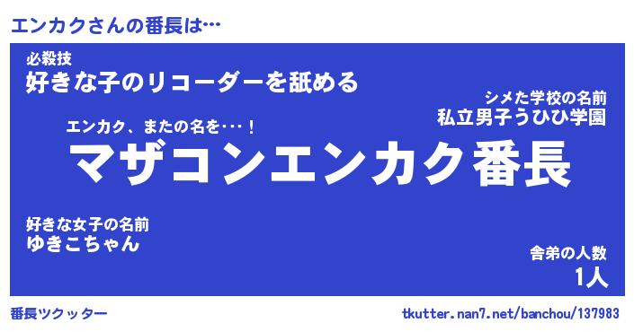 | 2回繰り返すあだ名 | 『エンエン』『エエンン』『ぎんぎん』 |