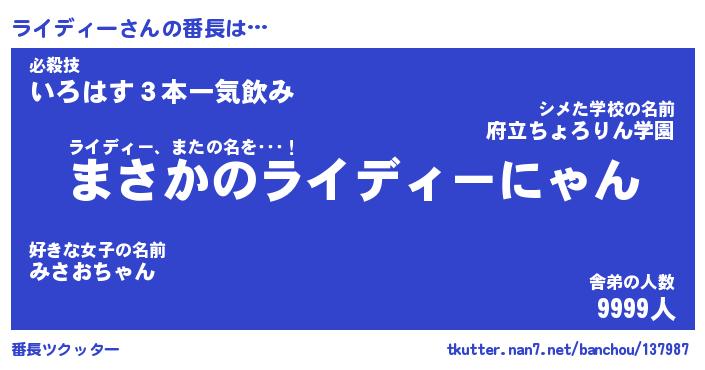 | 肩書あだ名 | 『ライディー店長』『ライディー国家主席』 |