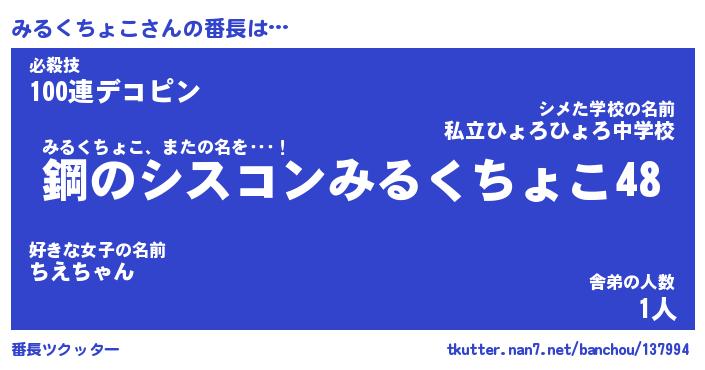 | 欧米人風あだ名 | 『マイケルみるくちょこ』 |