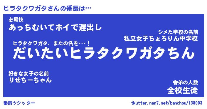 | ピコ太郎風あだ名 | 『ヒコ五郎』『ピヒ六郎』『ヒラ六郎』 |