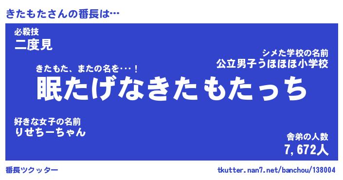 | 意味不明あだ名 | 『ペロリンきたもた』『永久保存きたもた』 |