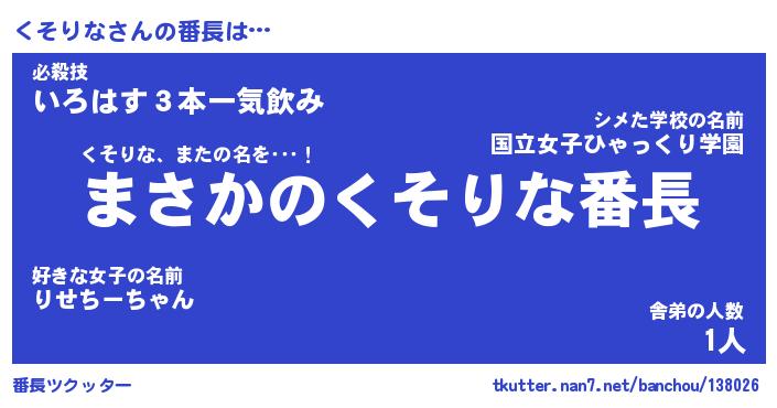 | ヘコむあだ名 | 『くそもー』『なまこ酢』『くそを』 |