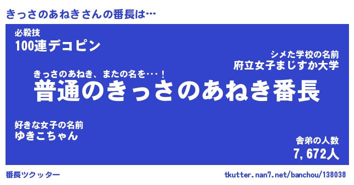 | 男性向けラノベタイトル風あだ名 | 『きっさのあねきの憂鬱』 |