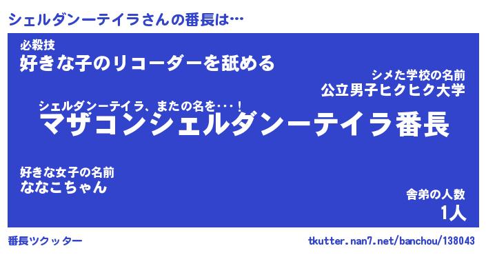 | ヒーロー風カッコイイあだ名 | 『スーパーシェルダンーテイラ』 |