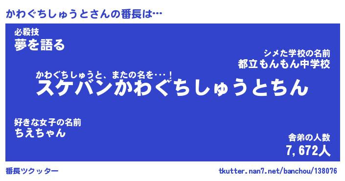 | 意味不明あだ名 | 『ペロリンかわぐちしゅうと』 |