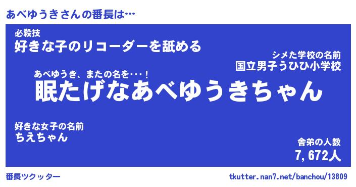 | 肩書あだ名 | 『あべゆうき社長令嬢』『あべゆうき班長』 |
