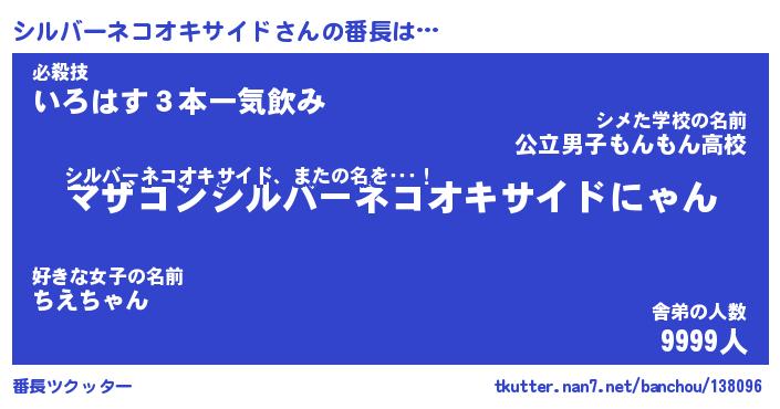 | ヒーロー風カッコイイあだ名 | 『スーパーシルバーネコオキサイド』 |