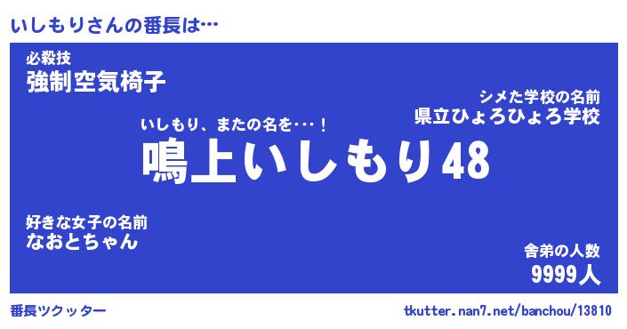 ヒーロー風カッコイイあだ名 | 『スーパーイシモリ』『暗黒騎士イシ』 |