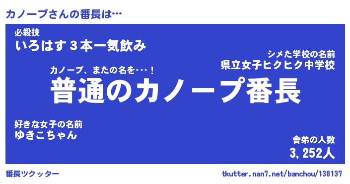 | 意味不明あだ名 | 『ペロリンカノープ』『永久保存カノープ』 |