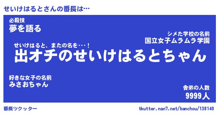 | 伝説のあだ名 | 『伝説のスナイパーせいけはると』 |