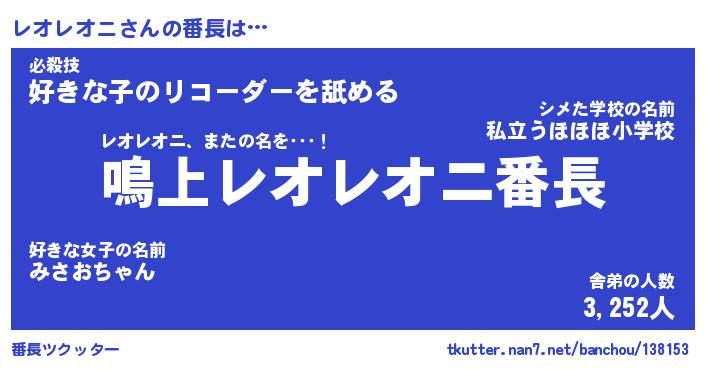 | 2回繰り返すあだ名 | 『レオレオ』『レレオオ』『ぬめぬめ』 |