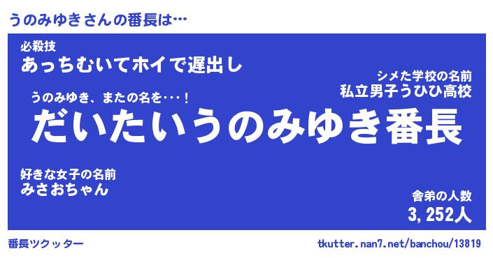 ツイッター うのみゆきさんのツイッターID『masyumaro_kun