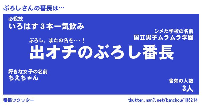 | 意味不明あだ名 | 『ペロリンぶろし』『ぶろしフォーエバー』 |