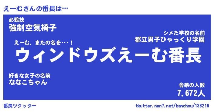 | 男性向けラノベタイトル風あだ名 | 『えーむの憂鬱』 |