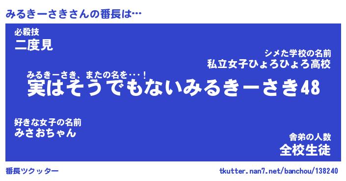 | ヘコむあだ名 | 『みるにー』『牛乳』『みるぷりん』 |