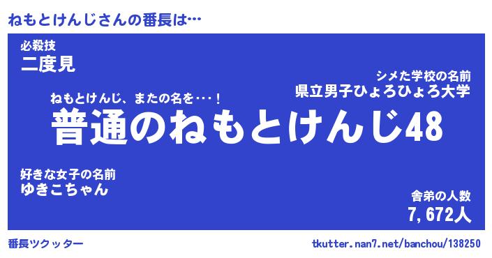 | 2回繰り返すあだ名 | 『ねもねも』『ねねもも』『けんけん』 |