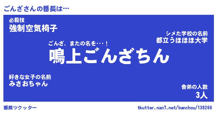 | ヒーロー風カッコイイあだ名 | 『スーパーゴンザ』『ウルトラごんざマン』 |