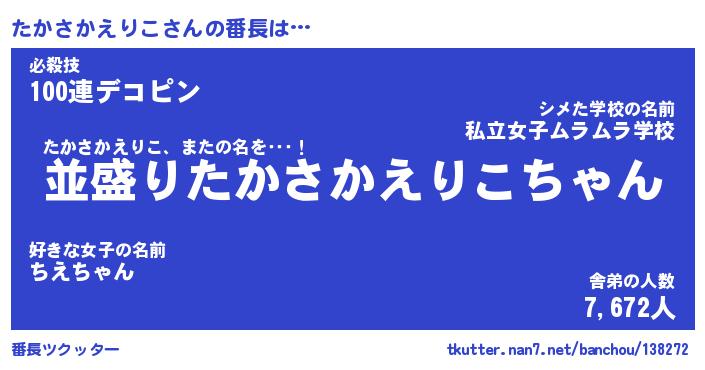 | 2回繰り返すあだ名 | 『たかたか』『たたかか』『ぬれぬれ』 |