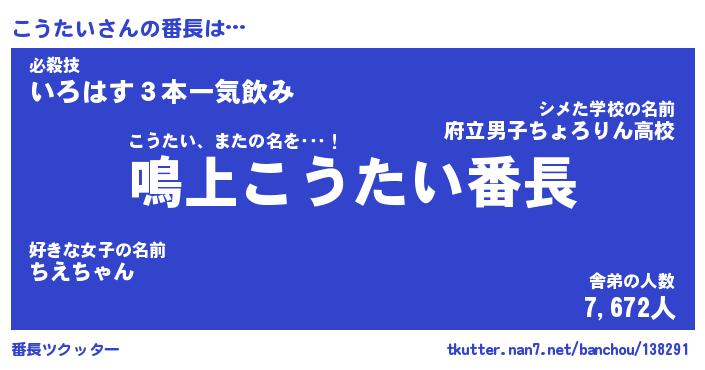 | ヒーロー風カッコイイあだ名 | 『スーパーコウタイ』『銀牙騎士コウ』 |