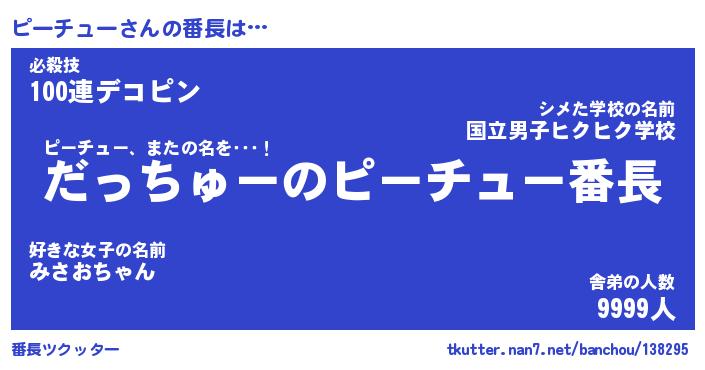 | ヒーロー風カッコイイあだ名 | 『スーパーピーチュー』『黄金騎士ピー』 |