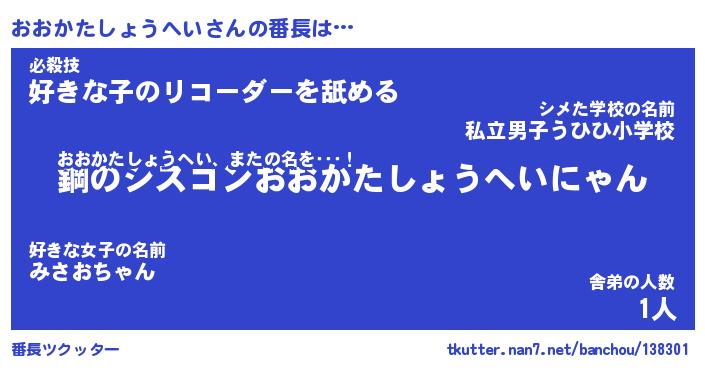 | 伝説のあだ名 | 『封印されしスナイパーおおかたしょうへい』 |