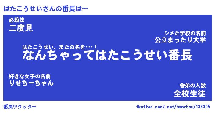 | 肩書あだ名 | 『はたこうせい店長』『はたこうせい団長』 |