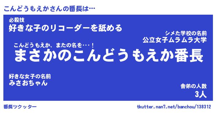 | 肩書あだ名 | 『こんどうもえか御曹司』 |