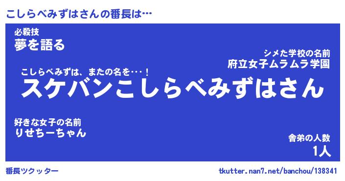 | 伝説のあだ名 | 『不死鳥のスナイパーこしらべみずは』 |
