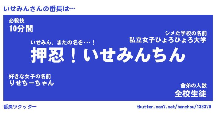 | 意味不明あだ名 | 『ペロリンいせみん』『永久保存いせみん』 |