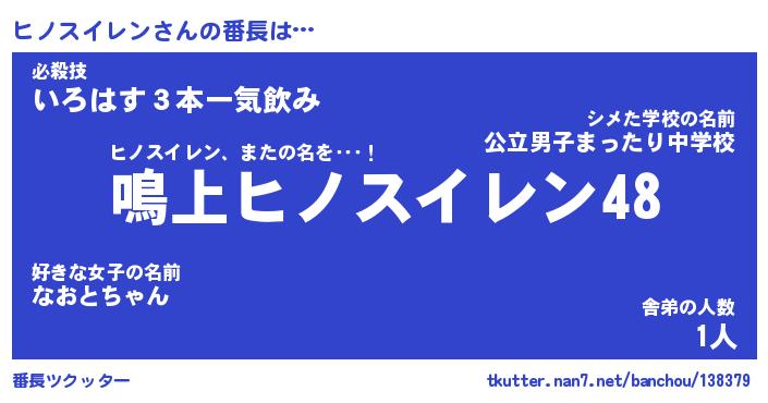 | 肩書あだ名 | 『ヒノスイレン店長』『ヒノスイレン班長』 |