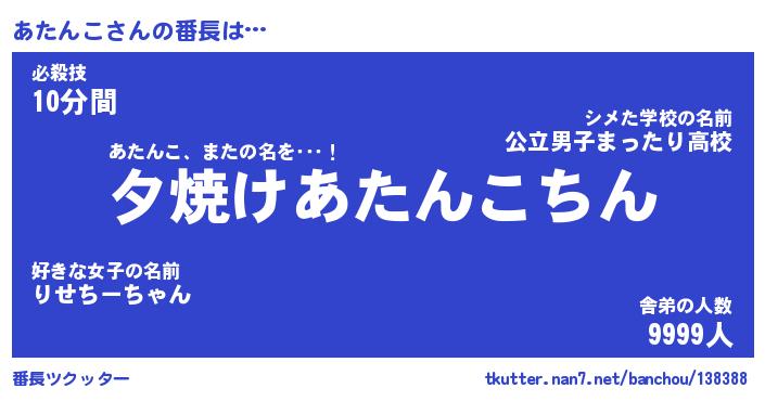 | 意味不明あだ名 | 『ペロリンあたんこ』『永久保存あたんこ』 |