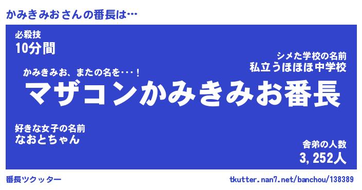 | 肩書あだ名 | 『かみきみお社長令嬢』『かみきみお班長』 |