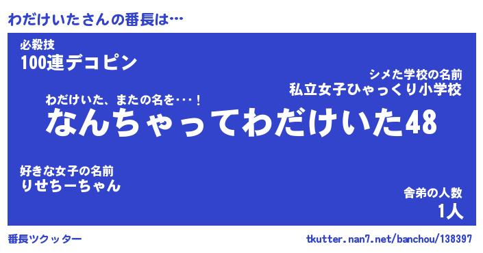| 肩書あだ名 | 『わだけいた御曹司』『わだけいた団長』 |
