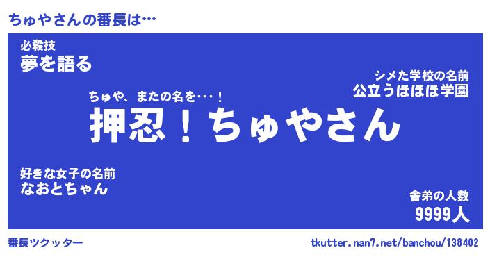 | 肩書あだ名 | 『ちゅや店長』『ちゅや総理大臣』 |