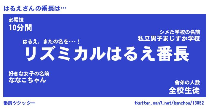 | ピコ太郎風あだ名 | 『ハコ八郎』『ピハ一郎』『ハル二郎』 |