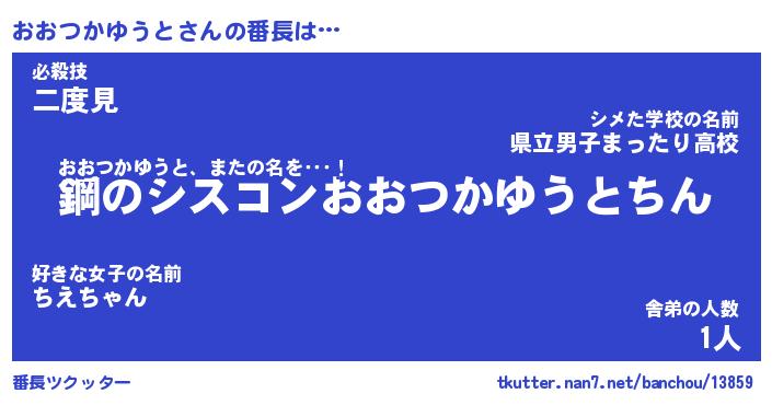 | 伝説のあだ名 | 『封印されしスナイパーおおつかゆうと』 |