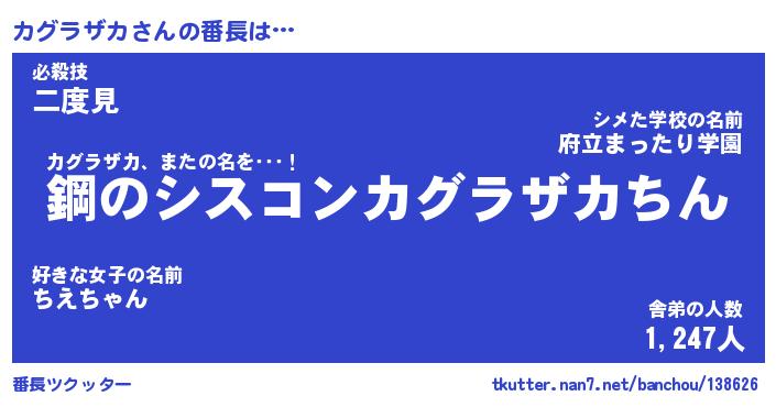 | ヒーロー風カッコイイあだ名 | 『スーパーカグラザカ』『天弓騎士カグ』 |