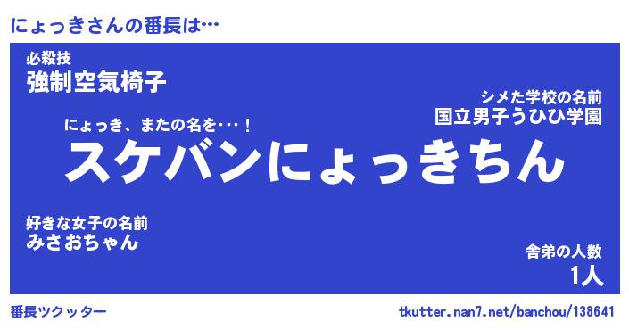 | 2回繰り返すあだ名 | 『にょにょ』『ににょょ』『ぐずぐず』 |