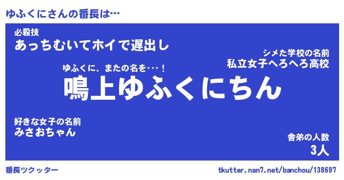| ピコ太郎風あだ名 | 『ユコ八郎』『ピユ史郎』『ユフ二郎』 |
