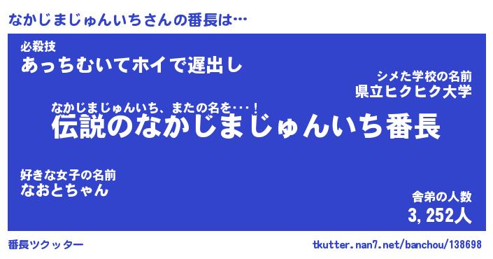 | 伝説のあだ名 | 『伝説のスナイパーなかじまじゅんいち』 |