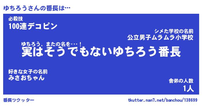 | 意味不明あだ名 | 『ペロリンゆちろう』『永久保存ゆちろう』 |