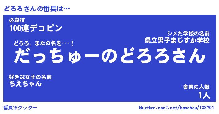 | 2回繰り返すあだ名 | 『どろどろ』『どどろろ』『がびがび』 |