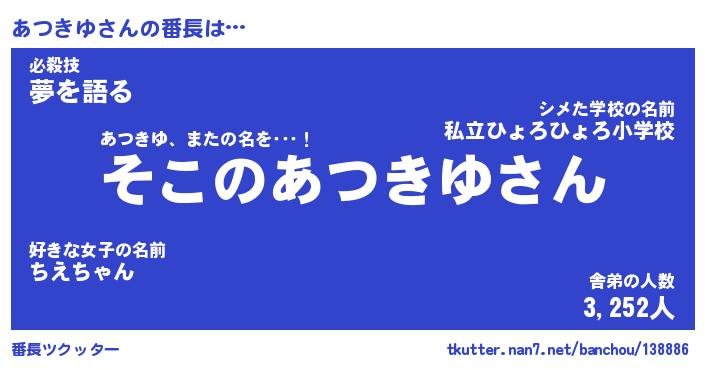 | 肩書あだ名 | 『あつきゆ店長』『あつきゆ総理大臣』 |