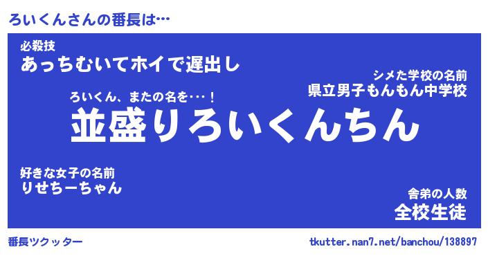 | 意味不明あだ名 | 『ペロリンろいくん』『永久保存ろいくん』 |