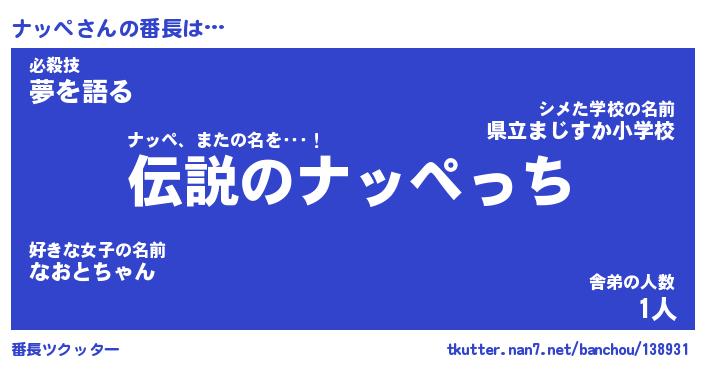 | ポケモン風あだ名 | 『ナッチュウ』『ナッペダネ』 |