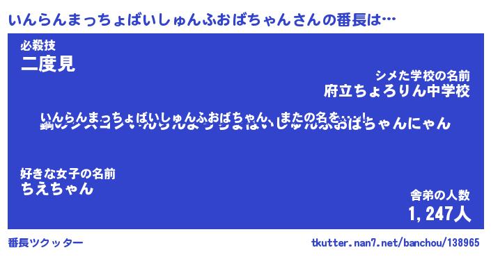 | ヒーロー風カッコイイあだ名 | 『スーパーインランマッチョバイシュンフオバチャン』 |