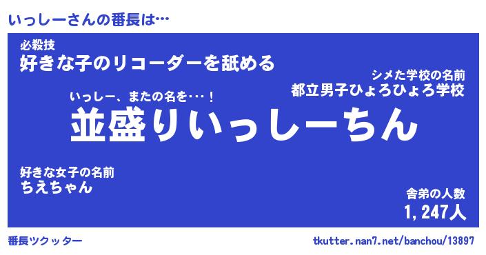 | 意味不明あだ名 | 『ペロリンいっしー』『永久保存いっしー』 |