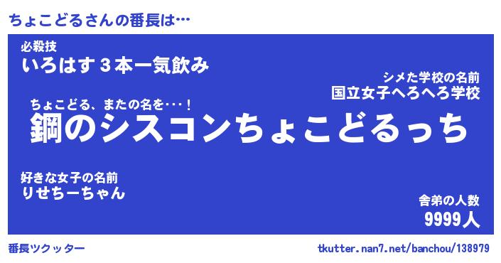 | 伝説のあだ名 | 『封印されしスナイパーちょこどる』 |